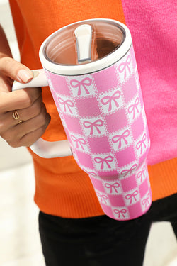 Bonbon Checkered Bow Print Tumbler Cup